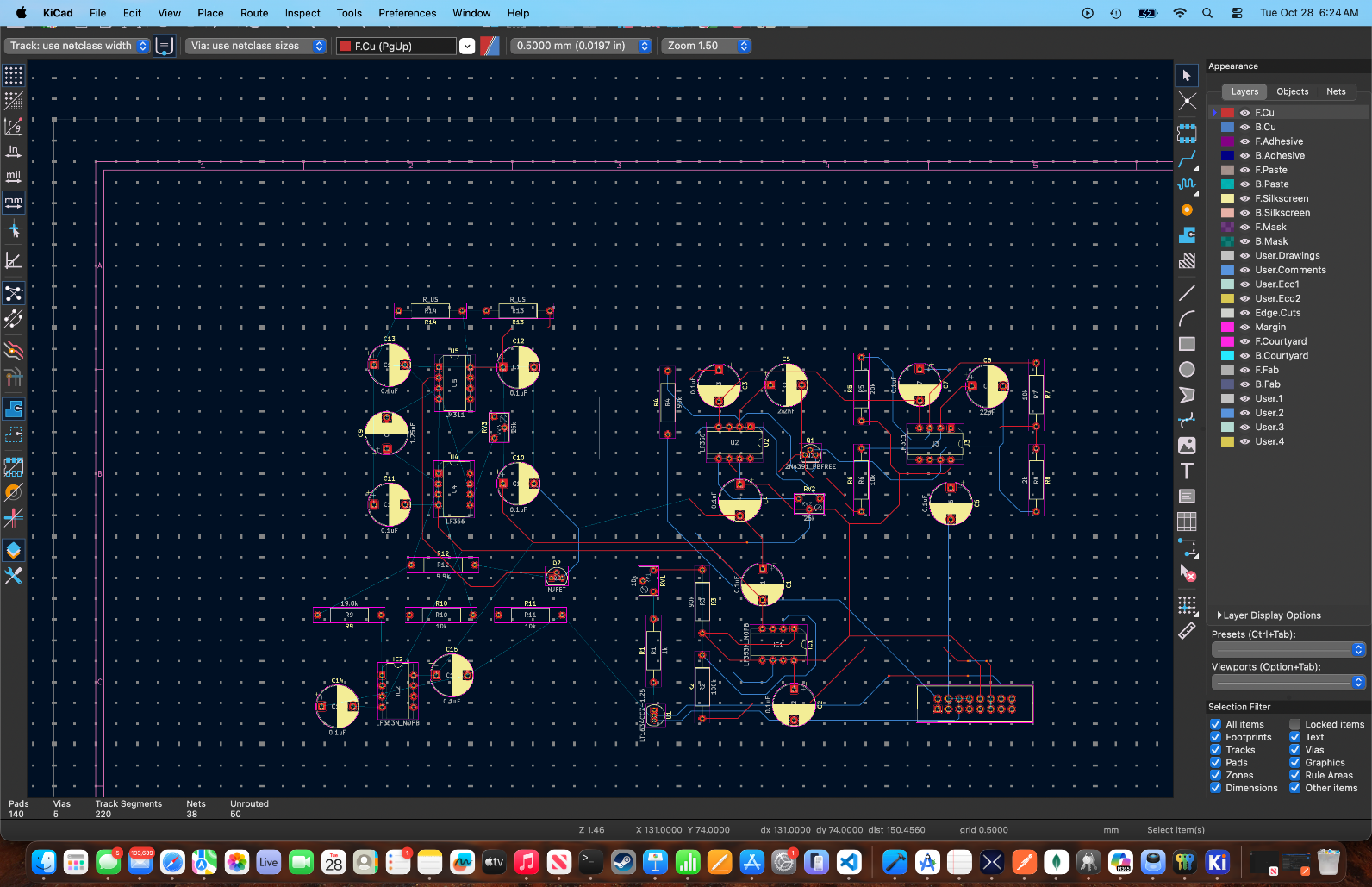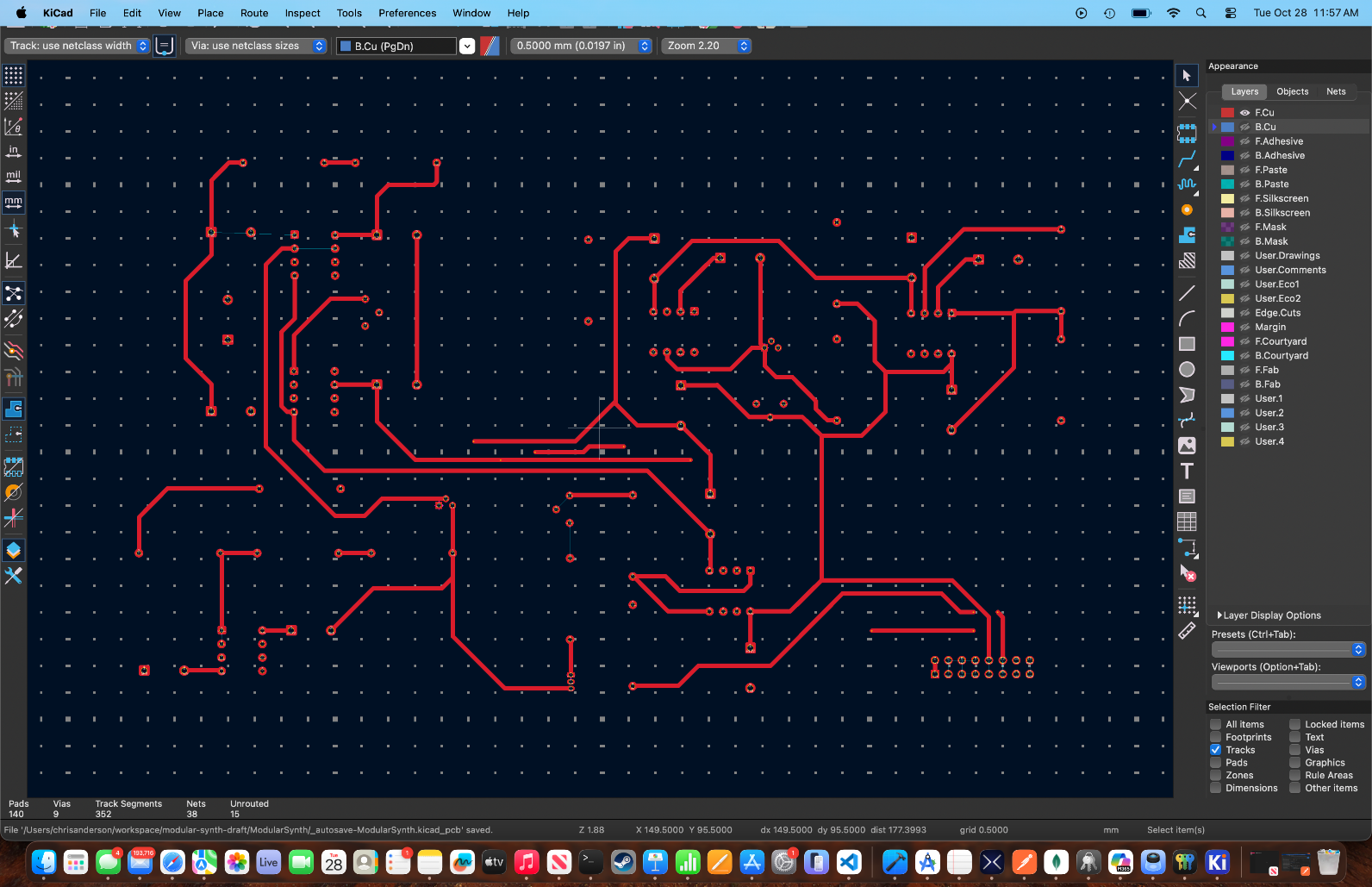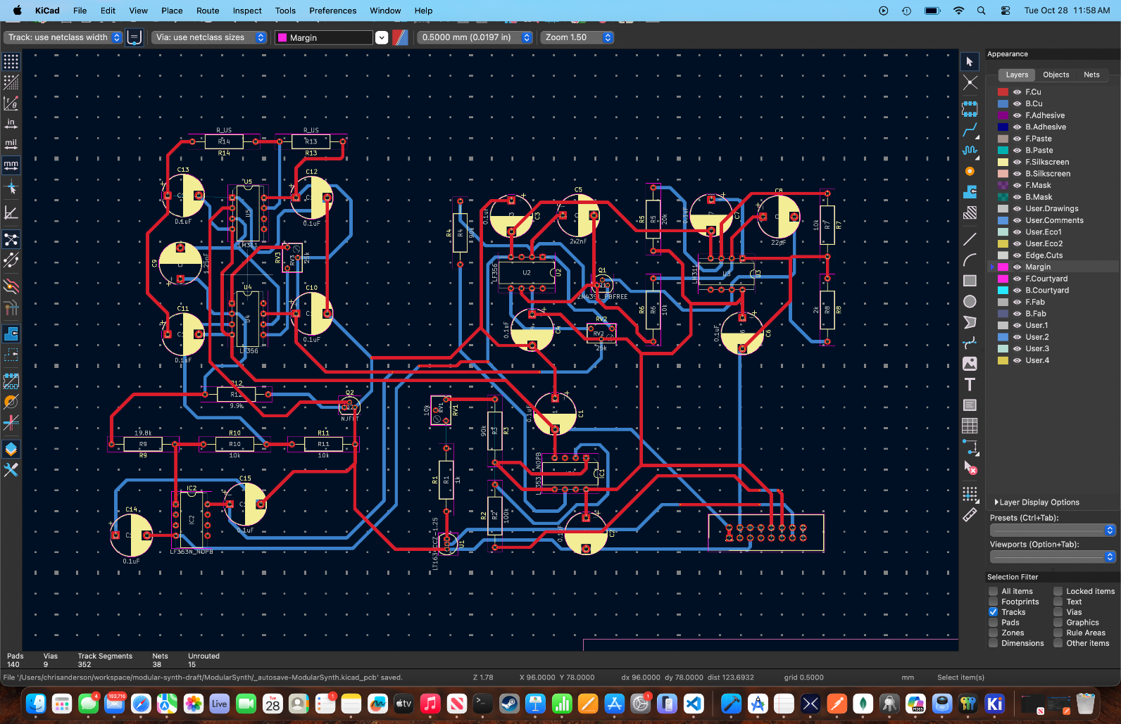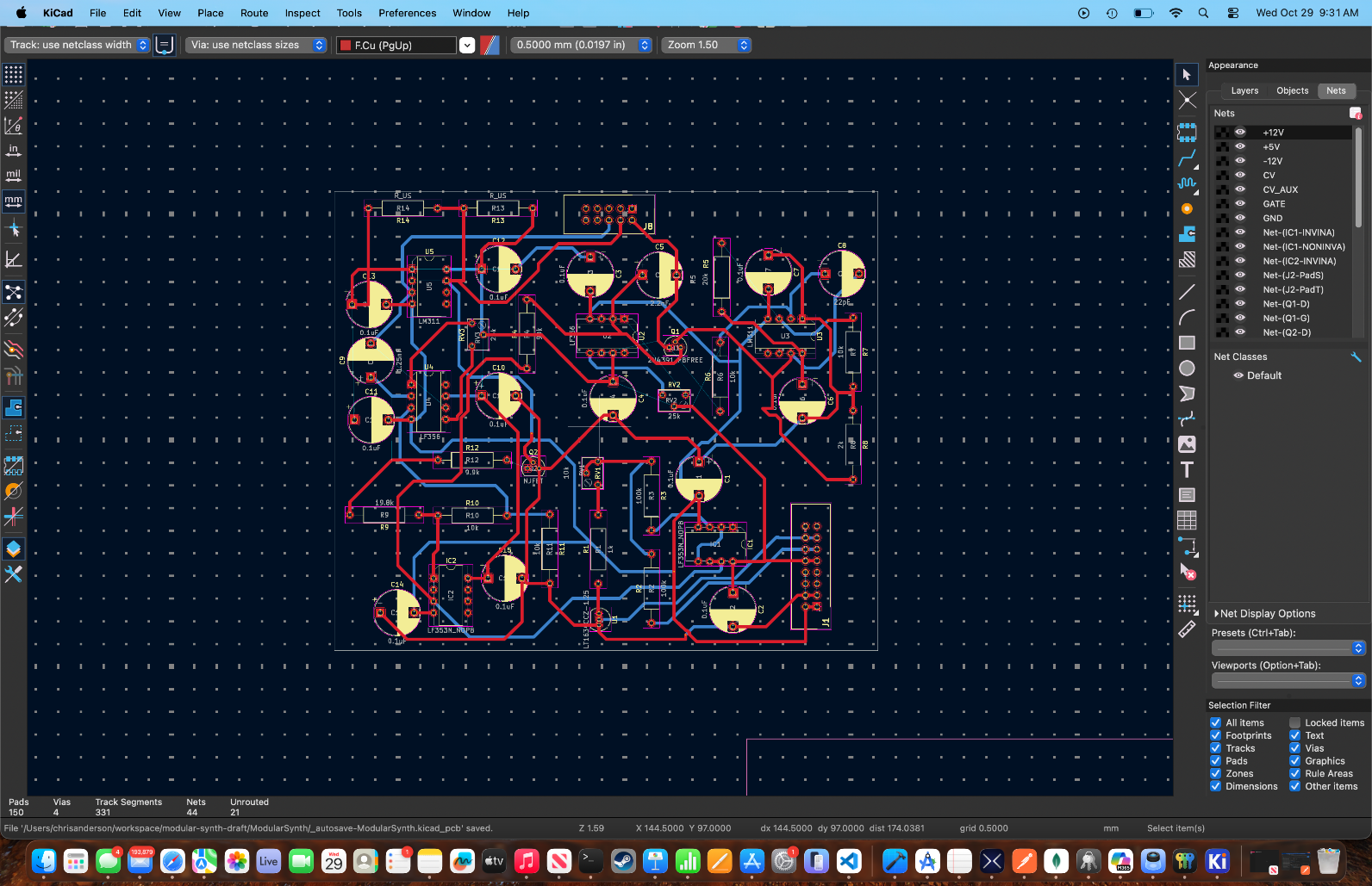 More oscillator work! Combining saw, square, and triangle in one module. I need to add a second header for the output.