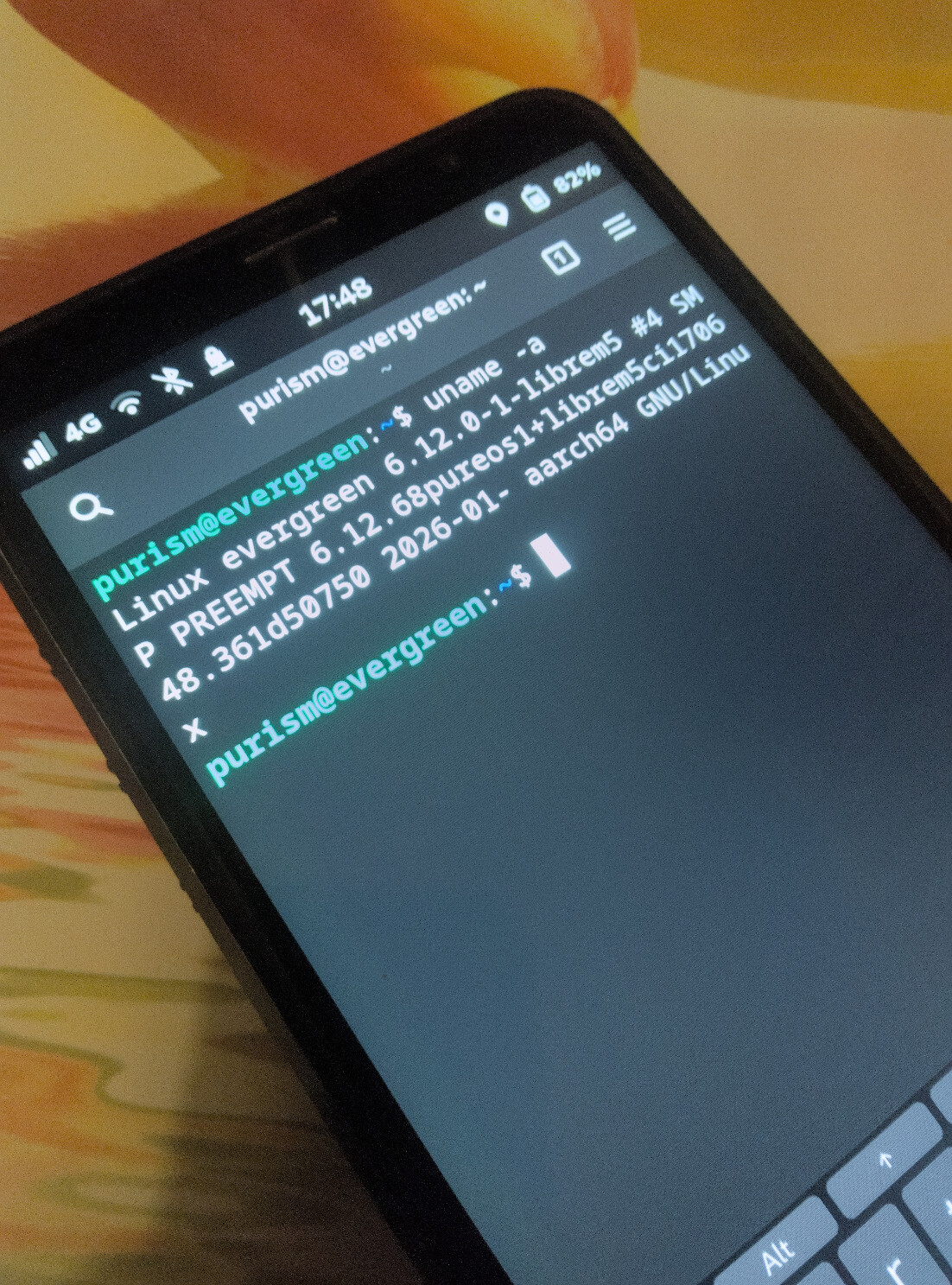 @battlegarden It's crimson on the photo, but rebasing the kernel is one of the steps towards trixie-based dawn.