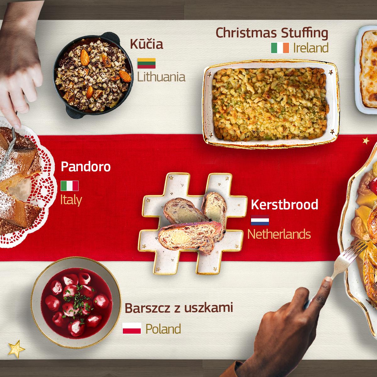 @EUCommission I can recommend borscht with dumplings (barszcz z uszkami) and kutia (which you listed as kūčia). I'd add other Christmas Eve food, like fish soup, mushroom soup, cabbage with mushrooms as a dish of its own, as pierogi stuffing or with square pasta (łazanki). Add kompot (sweet boiled fruit drink) and poppy seed roll (makowiec) to that.