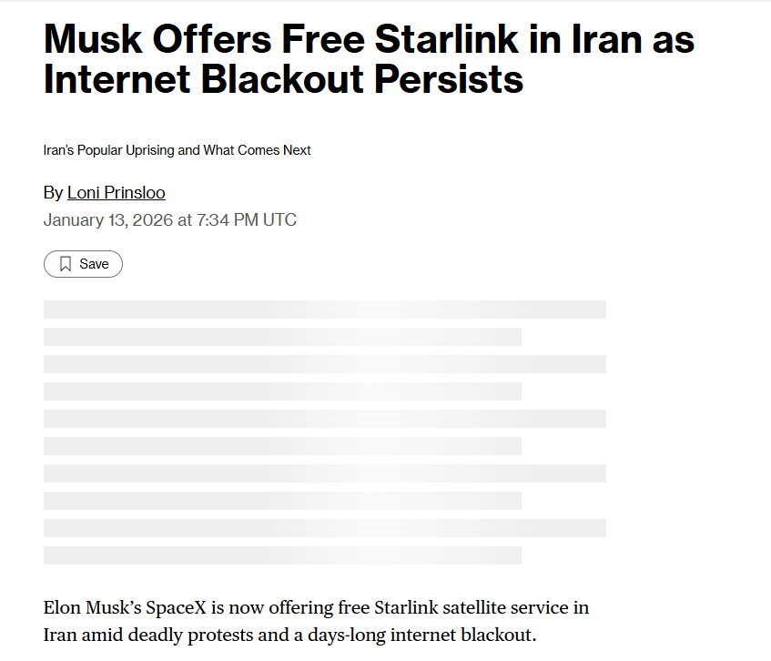 Elon Musk’s SpaceX has activated free Starlink satellite service in Iran amid ongoing protests and a severe internet blackout. According to Ahmad Ahmadian of Holistic Resilience, SpaceX has waived subscription fees so Iranians with receivers can access the network at no cost. A source familiar with Starlink confirmed the free access, though it hasn’t been publicly announced.