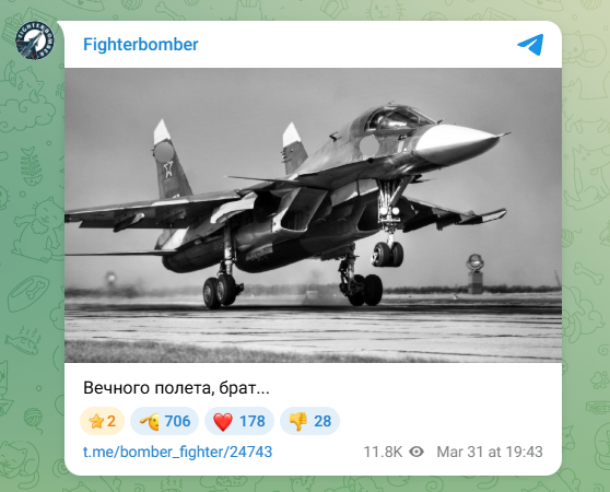 ❗️BREAKING: Russian aviation related channel Fighterbomber confirms Russia lost a Su-34 fighter jet.