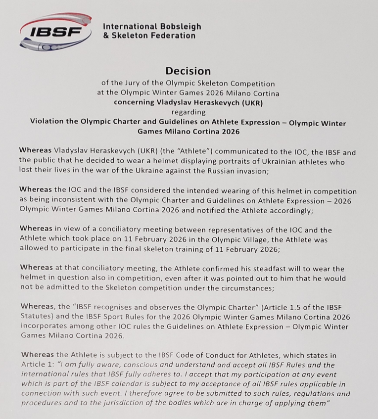 Remembering is a crime apparently. Ukraine’s skeleton racer Vladyslav Heraskevych was disqualified from the Milano Cortina Winter Olympics after wearing a helmet depicting Ukrainian athletes killed since Russia’s 2022 invasion. His team plans to appeal to the Court of Arbitration for Sport. #Ukraine