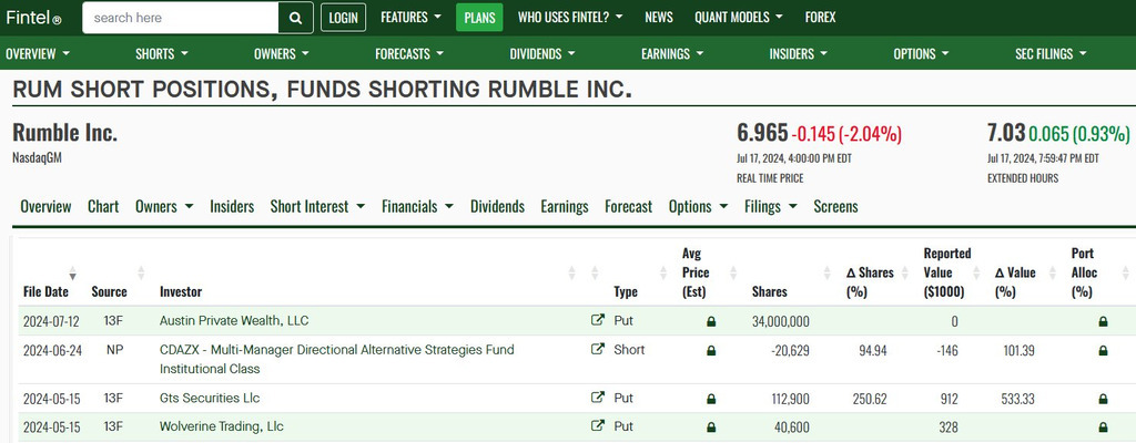 $DJT on the day before his attempted assassination, Austin Private Wealth, LLC, also shorted 34,000,000 shares of RUMBLE ($RUM) on the exact same day. If Trump were killed, Rumble would have tumbled and DJT would have collapsed, resulting in a windfall of profits, potentially in the billions. Not at all suspicious, right?