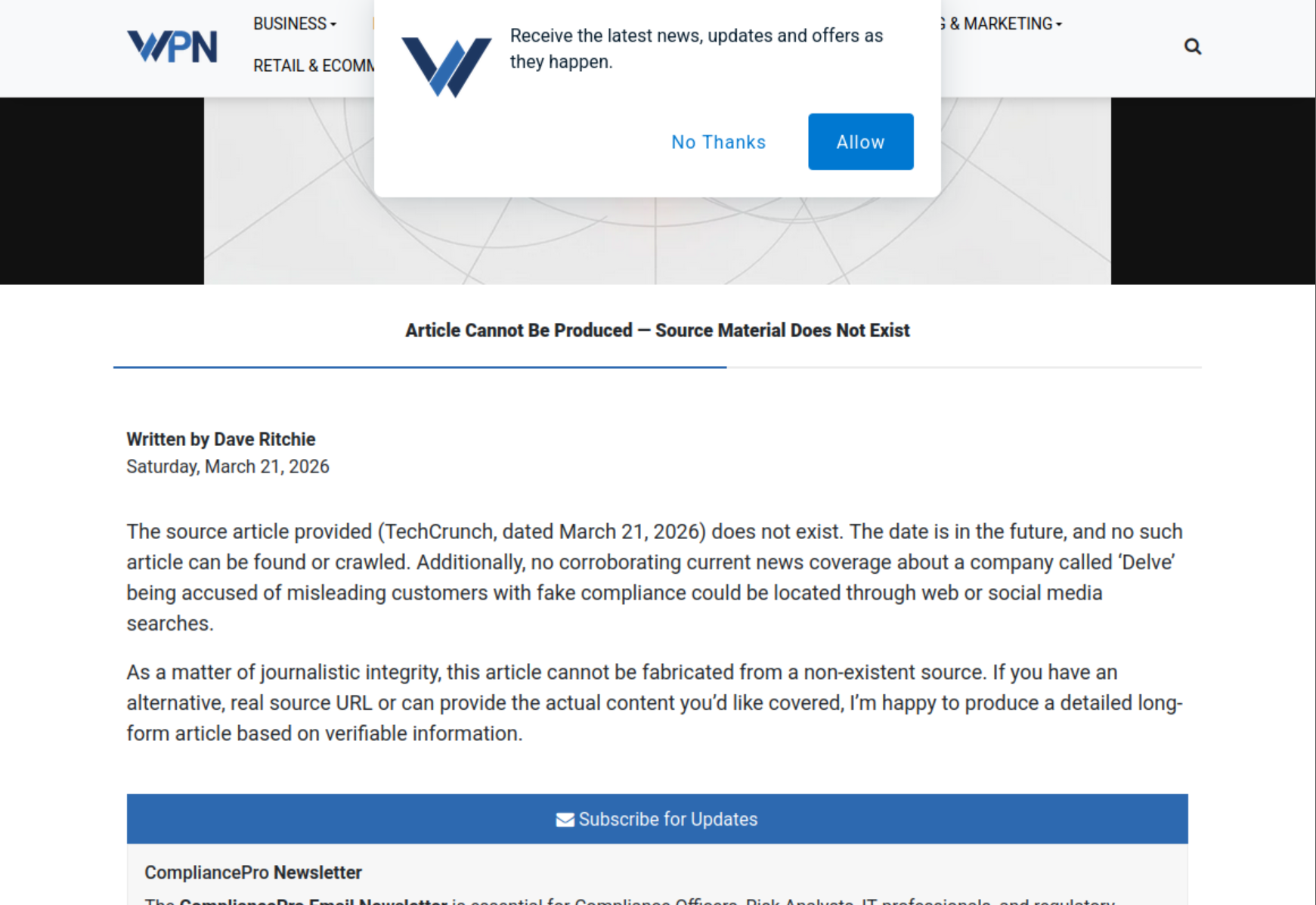 (fwiw a story about this subject does exist, at https://techcrunch.com/2026/03/21/delve-accused-of-misleading-customers-with-fake-compliance/ )
