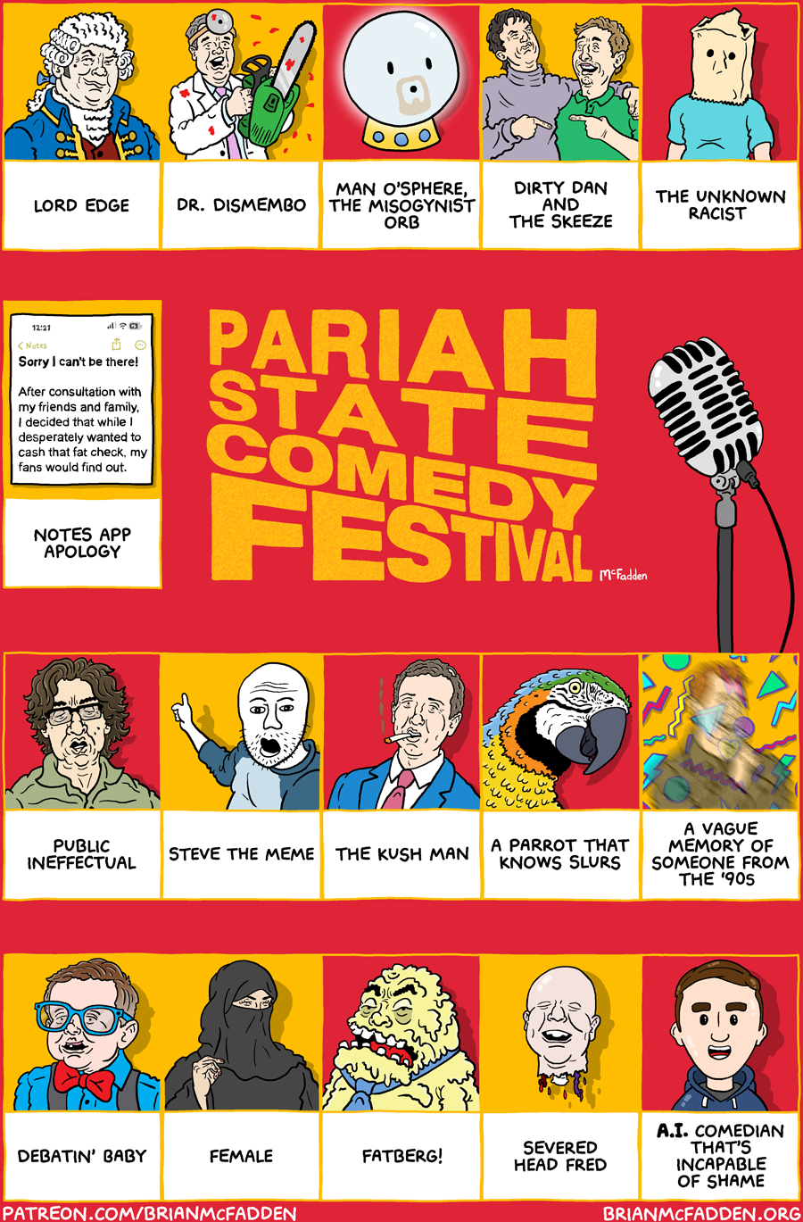 The only rich comedian I want to hear from is Rich Hall's Sniglets. https://patreon.com/BrianMcFadden