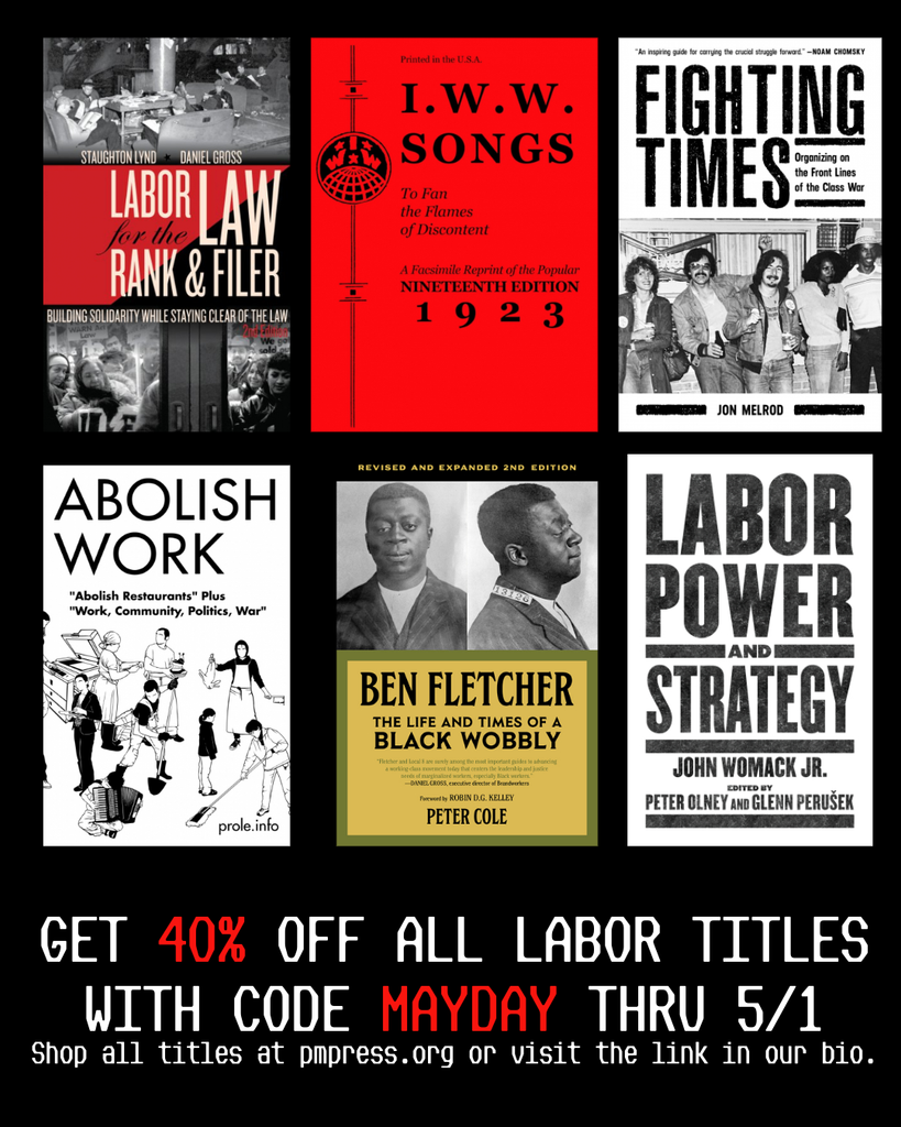 Gear up for May Day and the long fight ahead! Get 40% off all Labor Titles and 20% off select merch thru 5/1 with code MAYDAY: https://pmpress.org/index.php?l=product_list&c=50&sortby=num_sold:desc