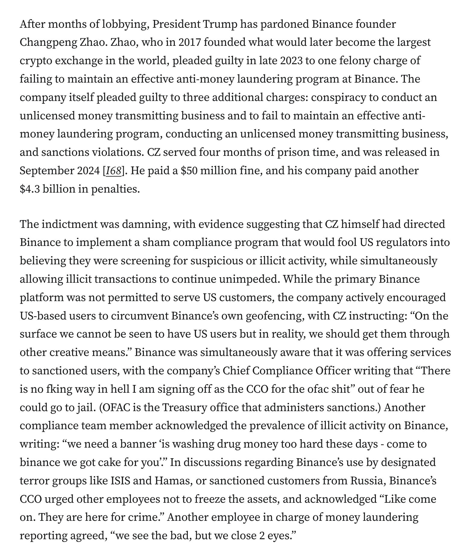 President Trump pardoned Binance founder and former CEO Changpeng Zhao. Despite a damning indictment suggesting CZ played an active role in directing his firm to break the law, the president has portrayed Zhao as a victim of a Biden “war on crypto”.