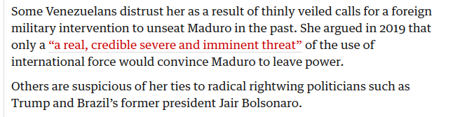 "...what are the US’ long-term goals? The three most likely ones are: a) the toppling of the Chavez government in Venezuela; b) its replacement by a new client State presumably headed by the Nobel Peace Prize laureate Machado; and c) the overt assertion of US dominance over the Caribbean region."