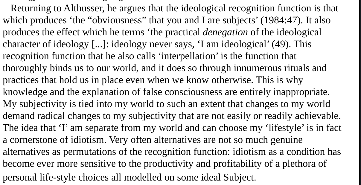 From the book Idiotism: Capitalism and the Privatization of Life, by Neal Curtis (2012)