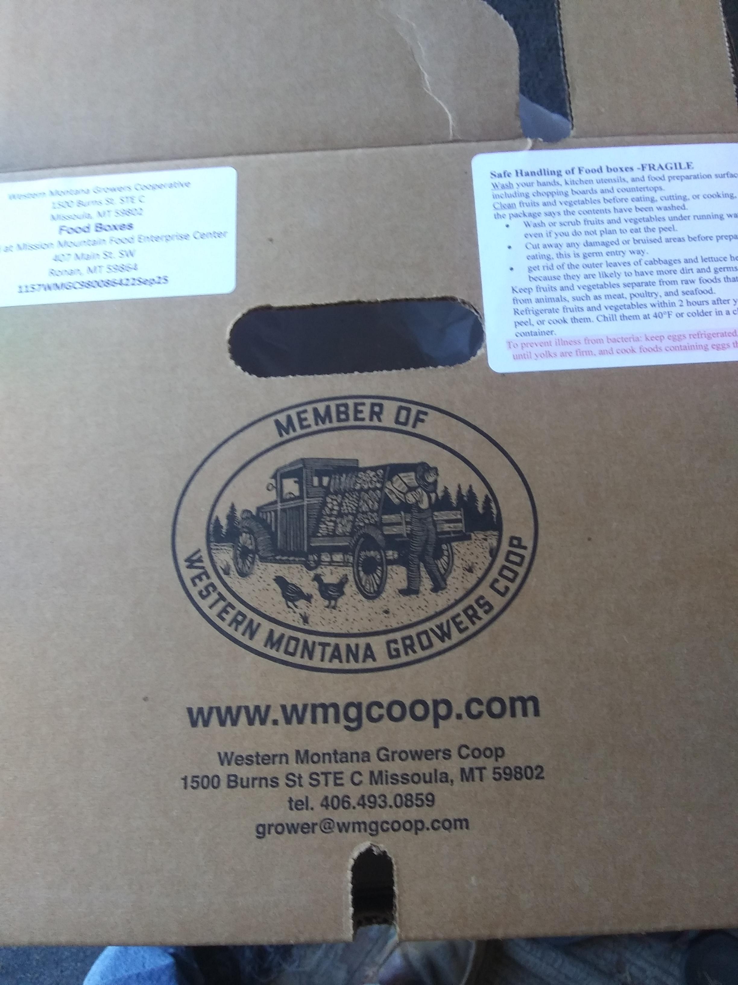 One of the nice things about living on the Reservation: every now and then the Tribe sends a box of food to everyone in town, tribal member or not. Produce, meat, even some frozen Flathead cherries. CSKT ftw.