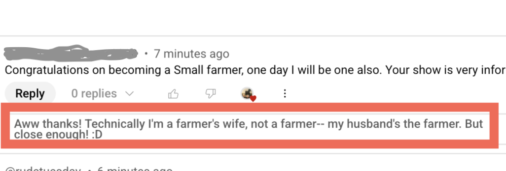It's tempting to go "Wow YouTube, your LLM is super sexist!" But this in fact how a lot of women in agriculture talk about themselves so.... yeah.