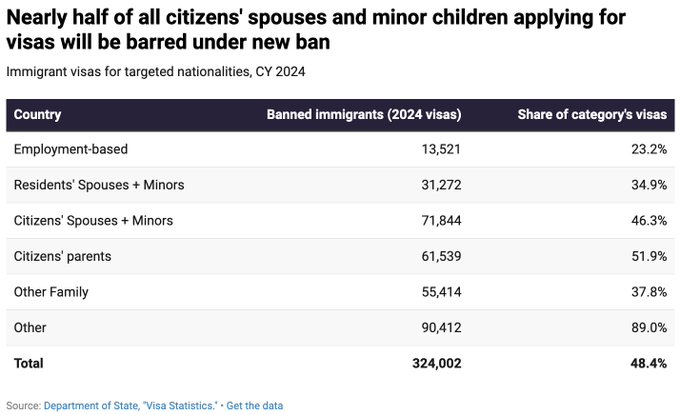 "Starting Wed,💔 HALF OF ALL LEGAL #immigrants, incl half of all spouses & minor children of US citizens, will be barred from obtaining IMM visas to come to the US legally.🚨A cruel & foolish policy that'll harm Americans."