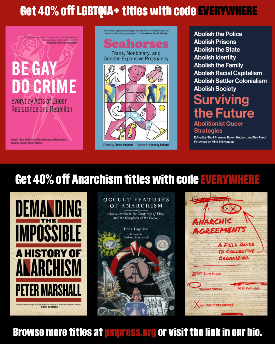 Get 40% off of Anarchism, Feminism, LGBTQIA+, and Anti-fascism titles AND 20% off of select merch with code EVERYWHERE thru 4/1.