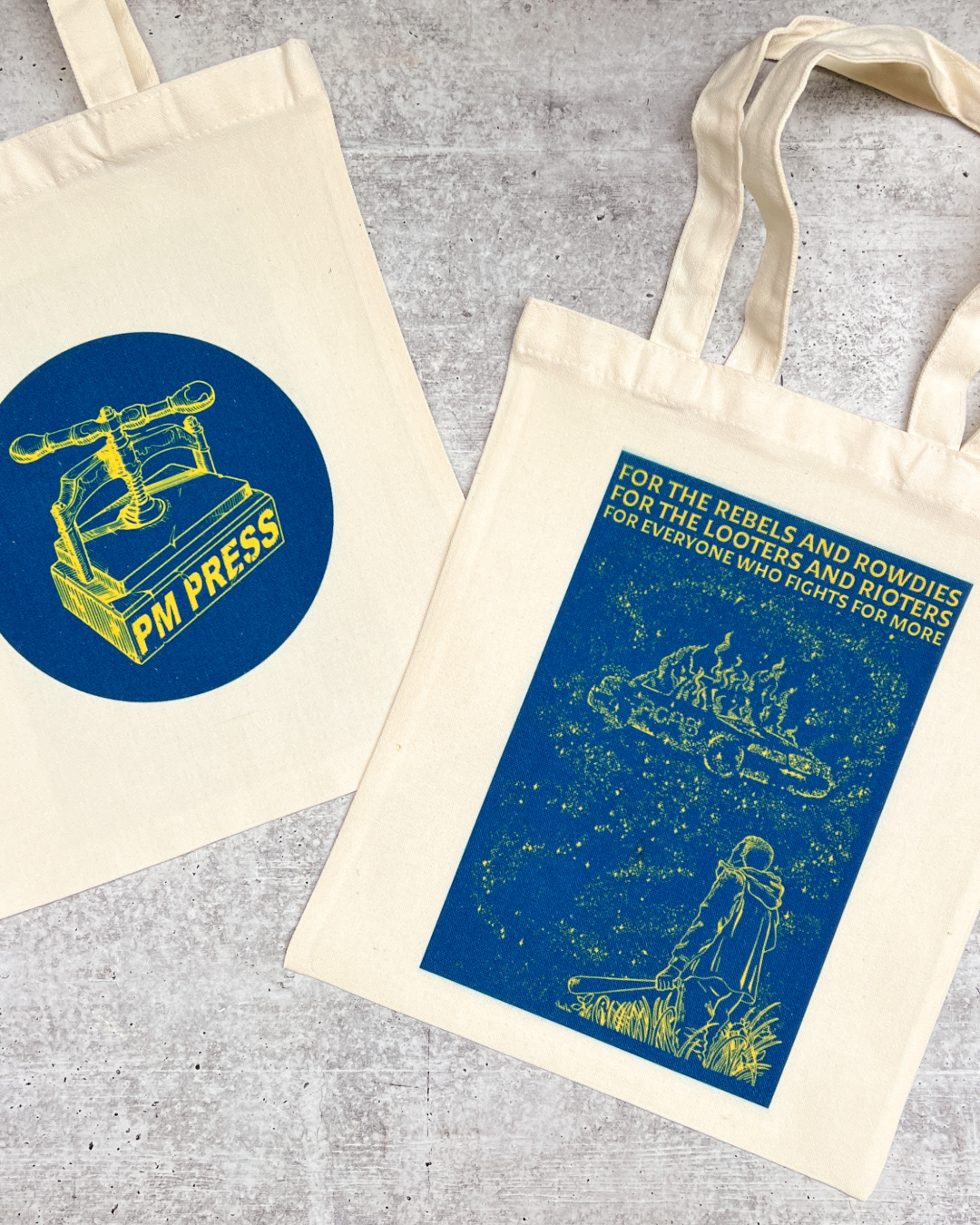 Fresh fundraiser totes featuring artwork from @nobonzo are available now! Every tote sold gets us closer to our goal of paying off our warehouse! Shop new merch here: https://pmpress.org/index.php?l=product_list&c=255