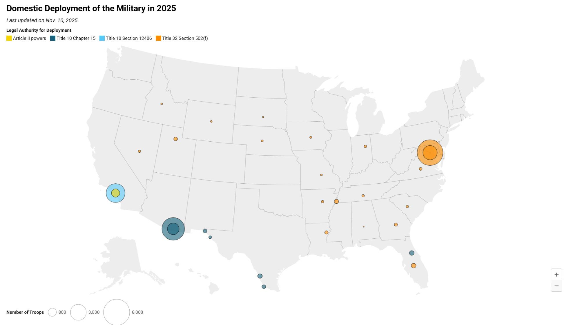 Lawfare's new project–which includes a tracker and a map–follows where and how the military is being domestically deployed. https://www.lawfaremedia.org/projects-series/trials-of-the-trump-administration/tracking-domestic-deployments-of-the-u.s.-military