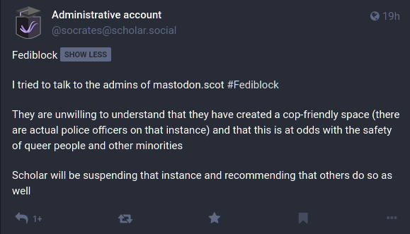 >unhappy with cops/law enforcement being on fedi
