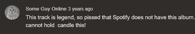 TBH, I'm not into streaming and Spotify in particular. I prefer physical media any day, if not that — Bandcamp is cool. It was bought (by Epic Games? 🤷) but it's still okay I think.