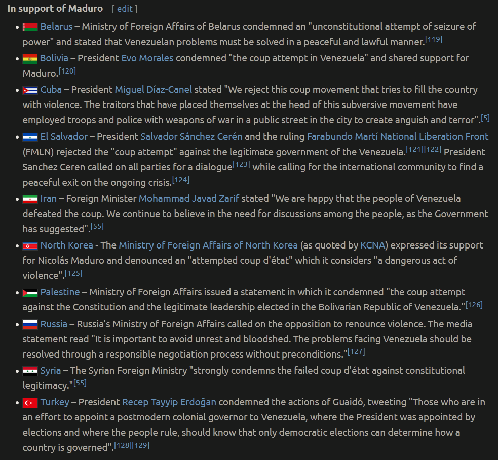 @gemlog Well, yeah, I know that the US is not all roses and are likely to have money in that game, but look at the marvelous list of countries supporting the guy (from the Wikipedia article). If that's the alternative, then yeah, I'm all for "bending over" to the US. I'm in this camp right now and I don't like it here in the slightest 😅