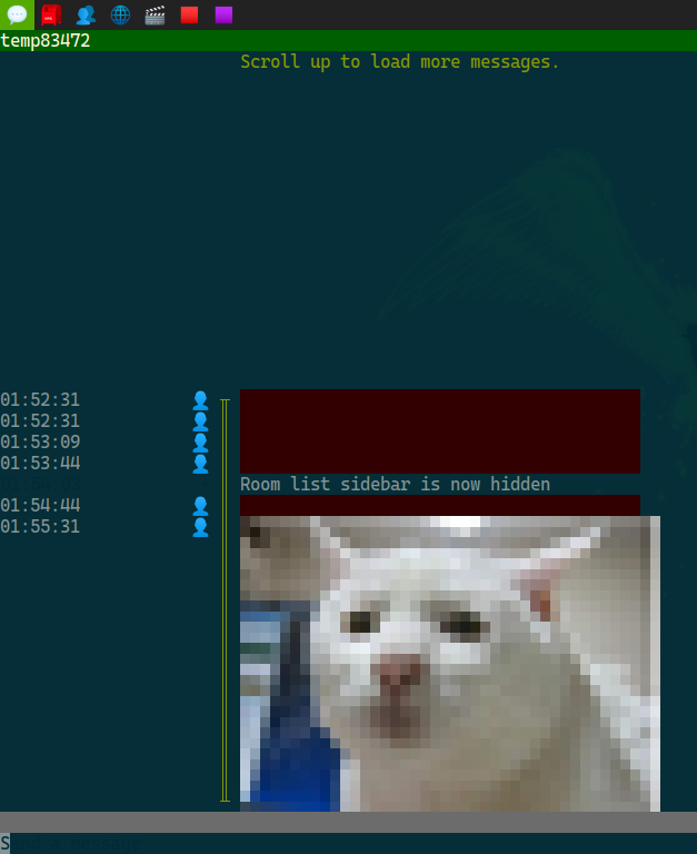 @tiskaan If you use Matrix, I also recommend gomuks — it's also TUI and written in Go. It can even display images — well, previews, using colored characters.