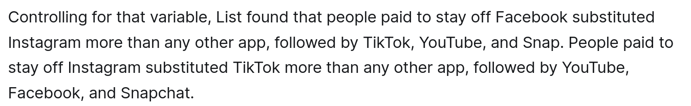 @caseynewton The sentence you write later in the article suggests that List's study also showed that Instagram is the #1 substitute for Facebook. Should acquiring your #1 substitute be an antitrust violation?