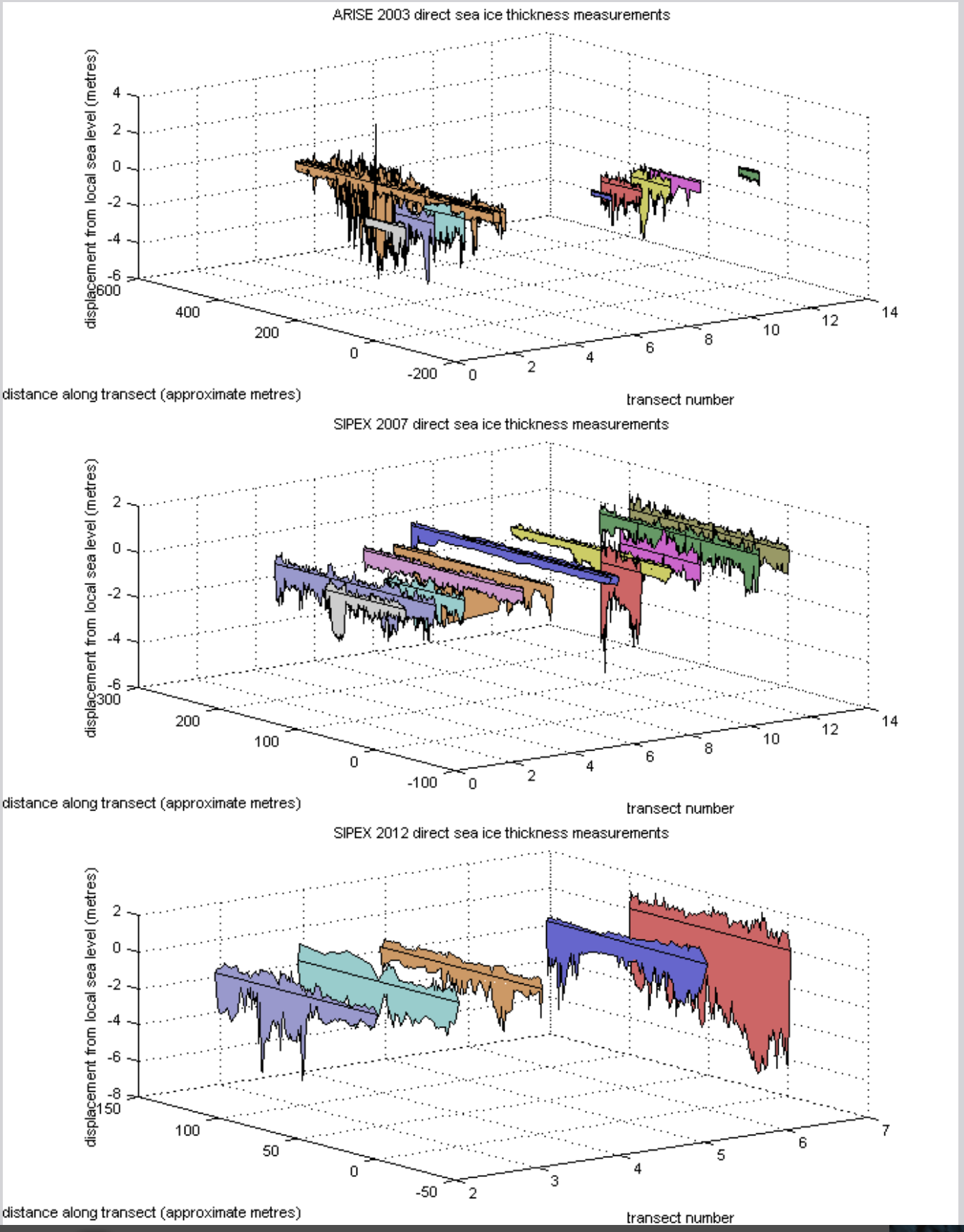 In-field sea ice thickness measurements across three expeditions to the east Antarctic pack ice zone in late winter, 8 years apart (2004-2012) - two of which I'm responsible for most of the observations on.
