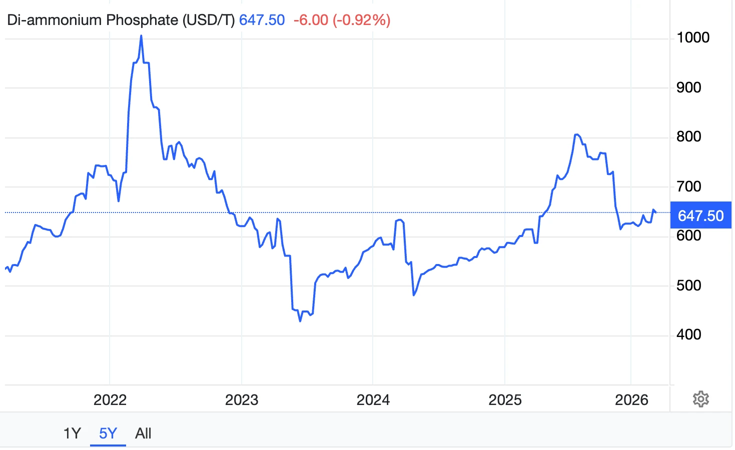 This is where fertilizer prices are at. Lower than they were for most of 2025.
