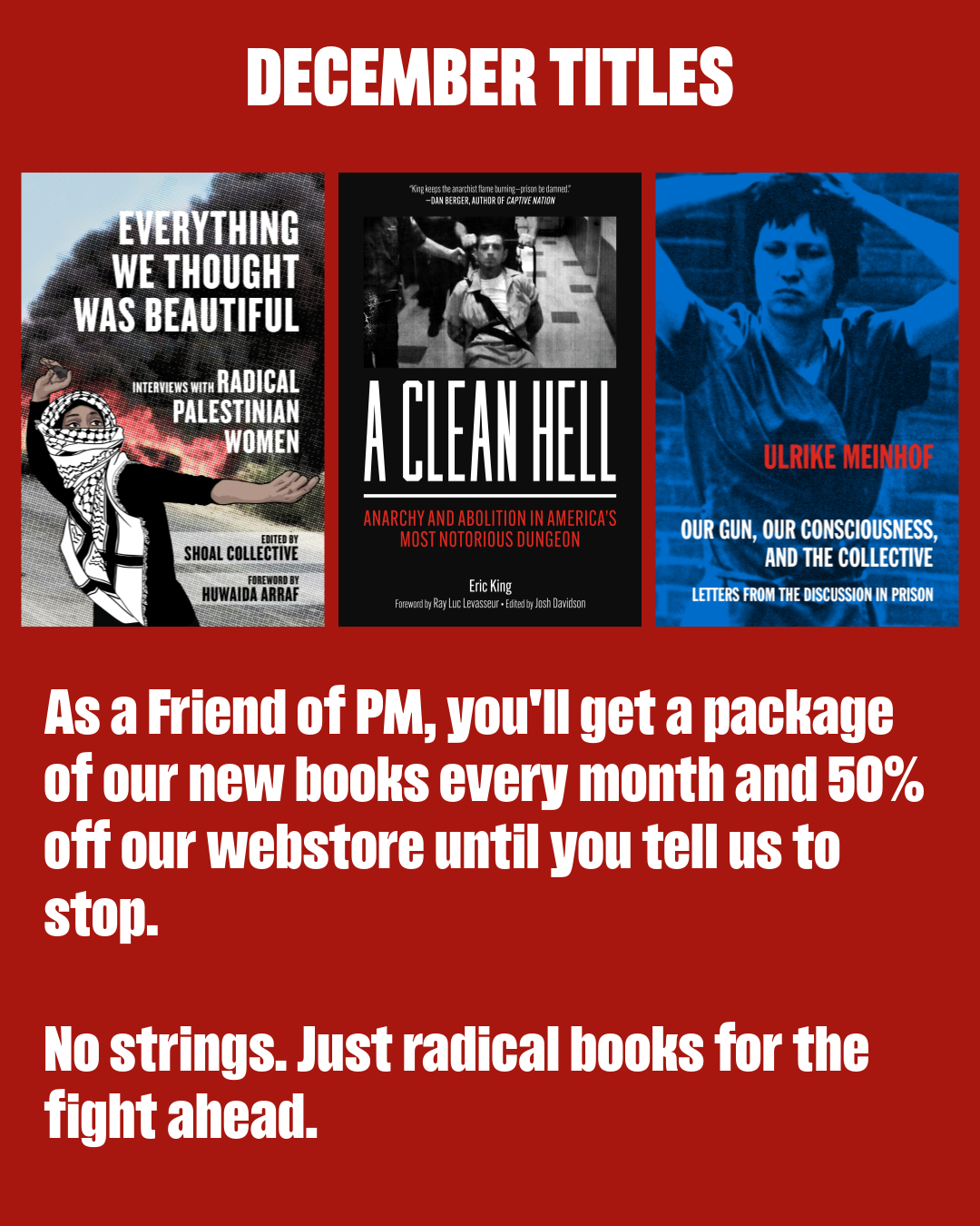 When you sign up to become a Friend of PM, we’ll send you books monthly, and you'll get 50% off of everything on our website year-round. You’ll also receive the Always Antifascist benefit scarf as a free gift if you sign up this month.